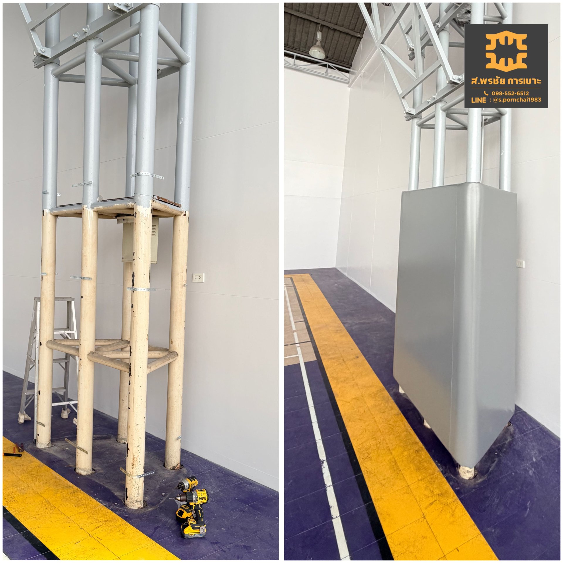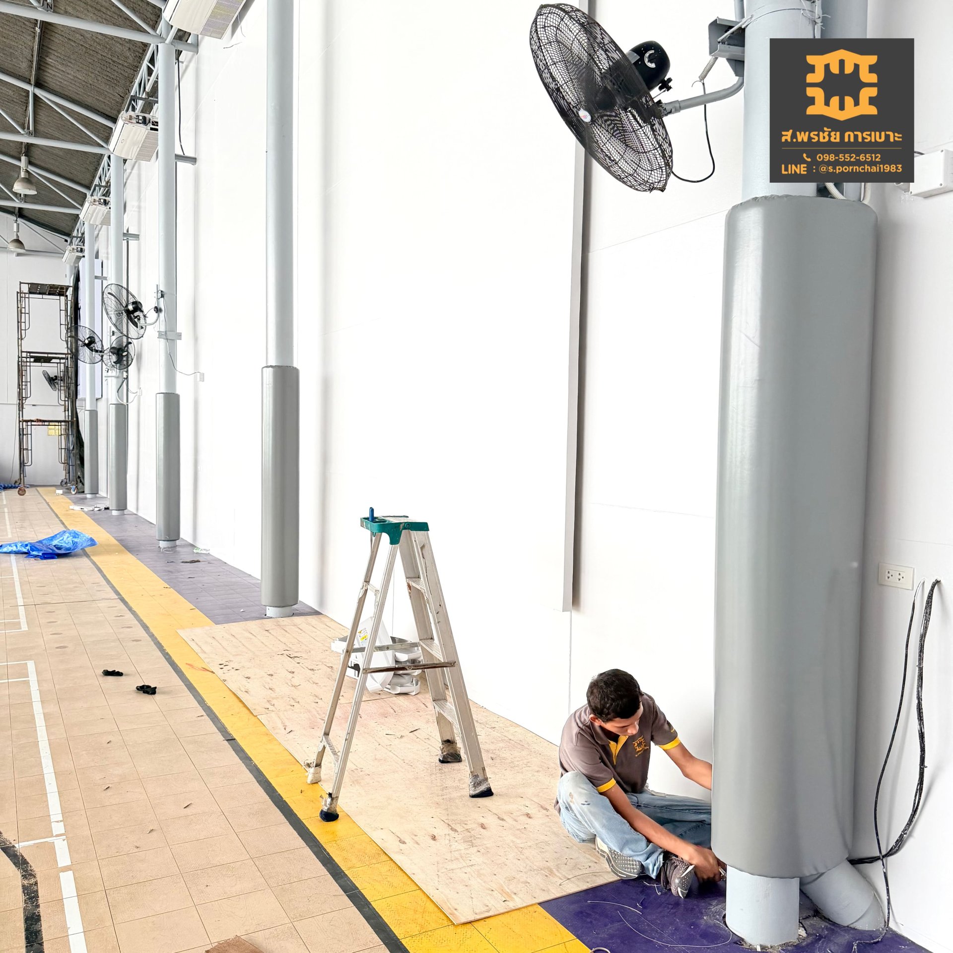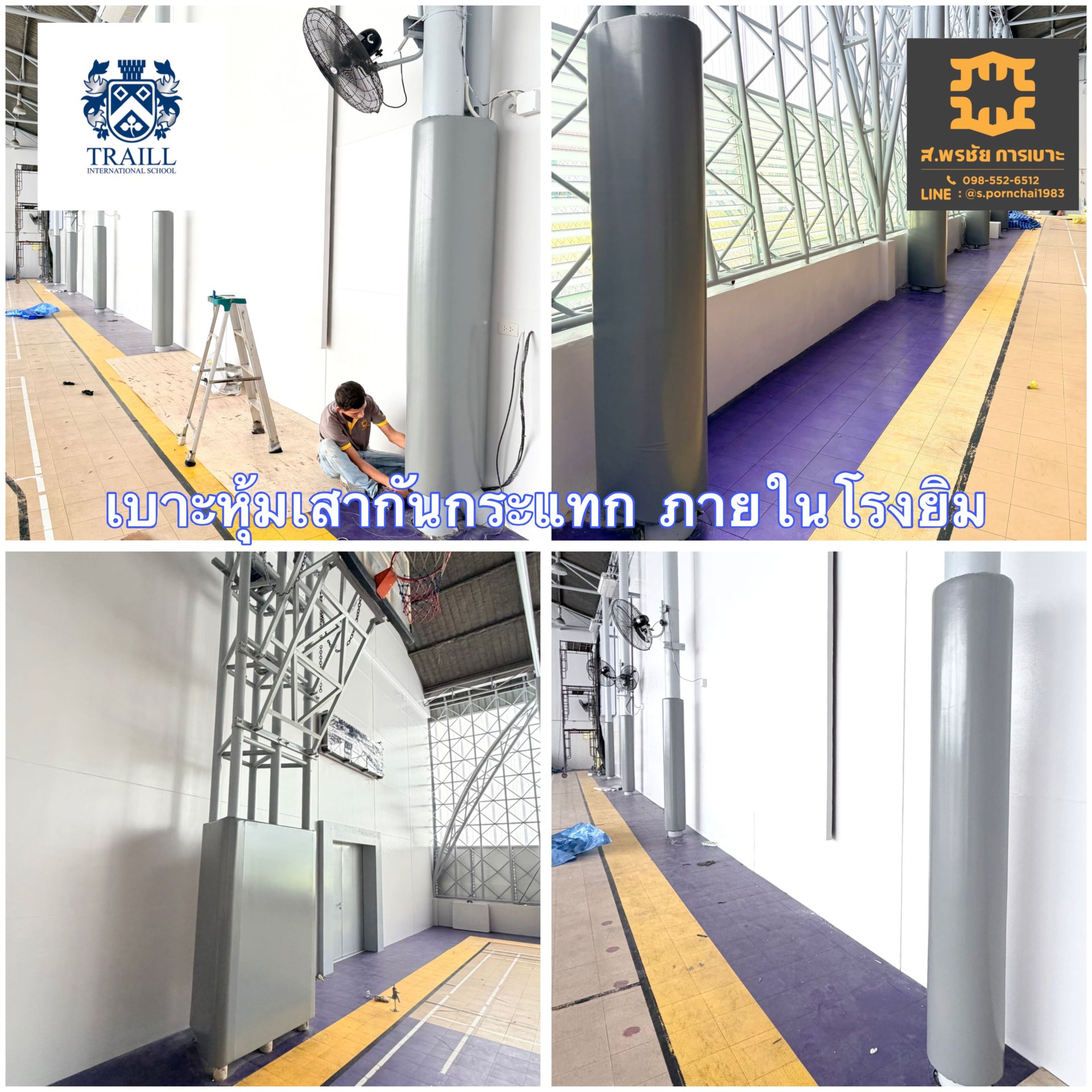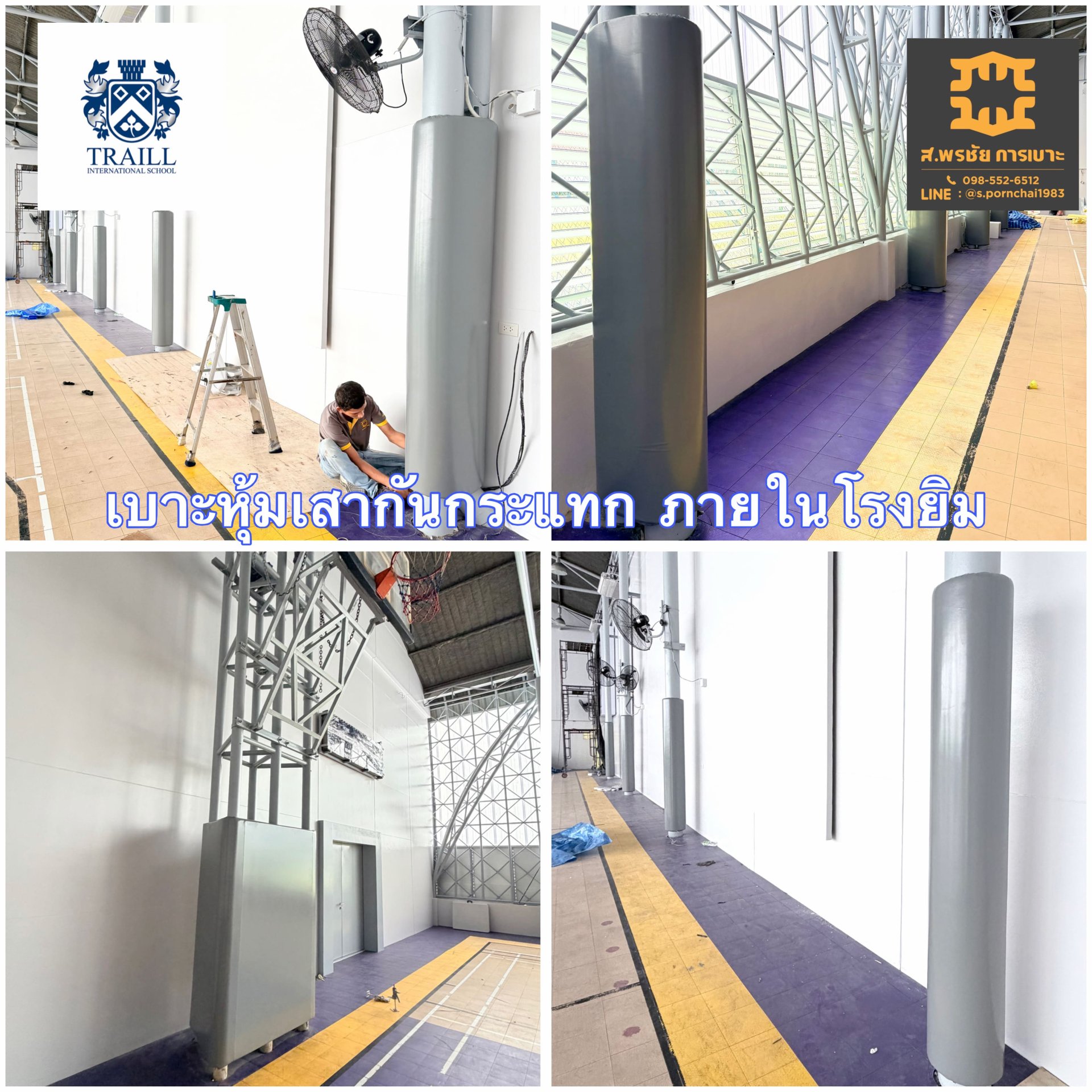 กับโครงการ ติดตั้งเบาะหุ้มเสากันกระแทกภายในโรงยิม Traill International School