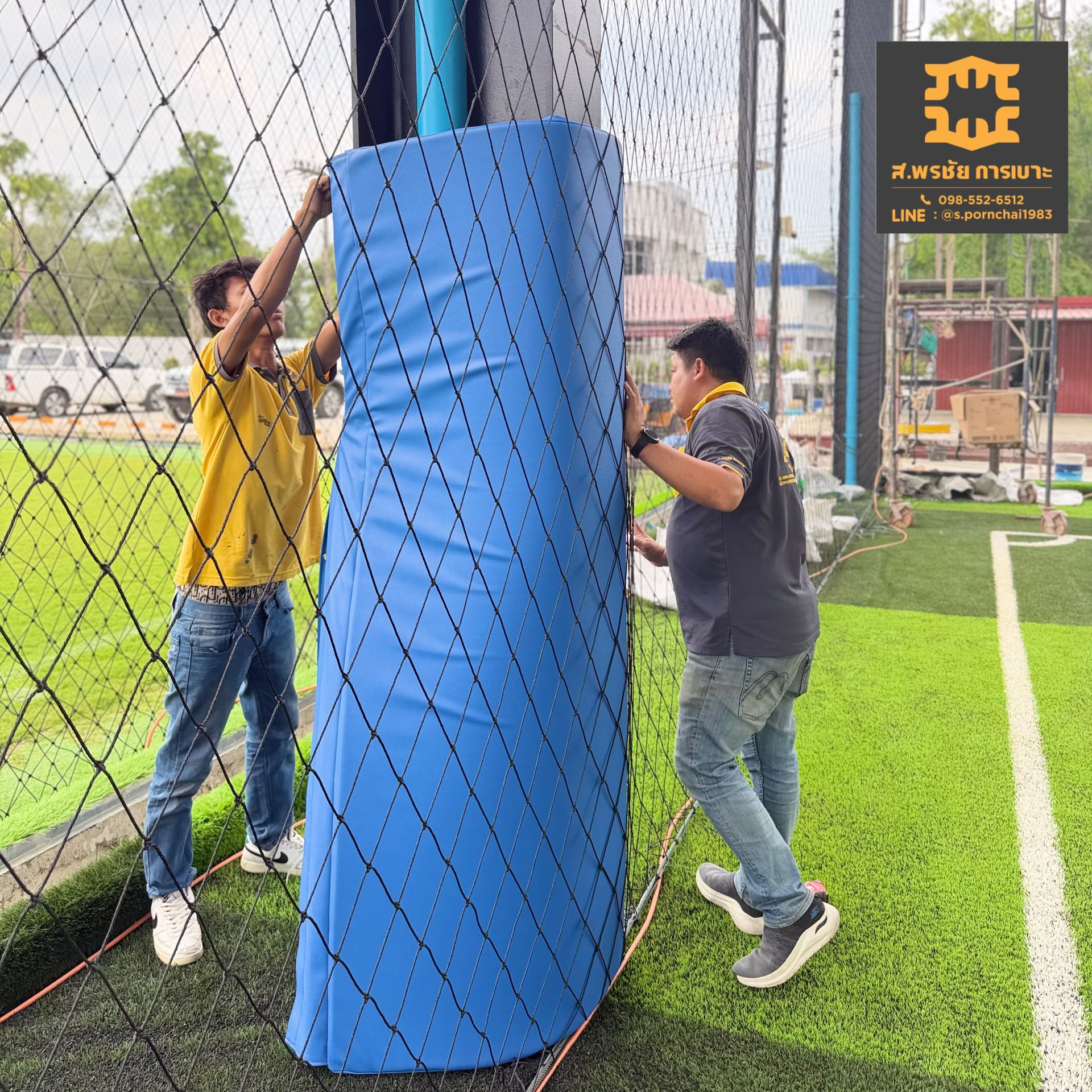 อีกหนึ่งผลงานติดตั้งเบาะหุ้มเสากันกระแทกสนามฟุตบอล